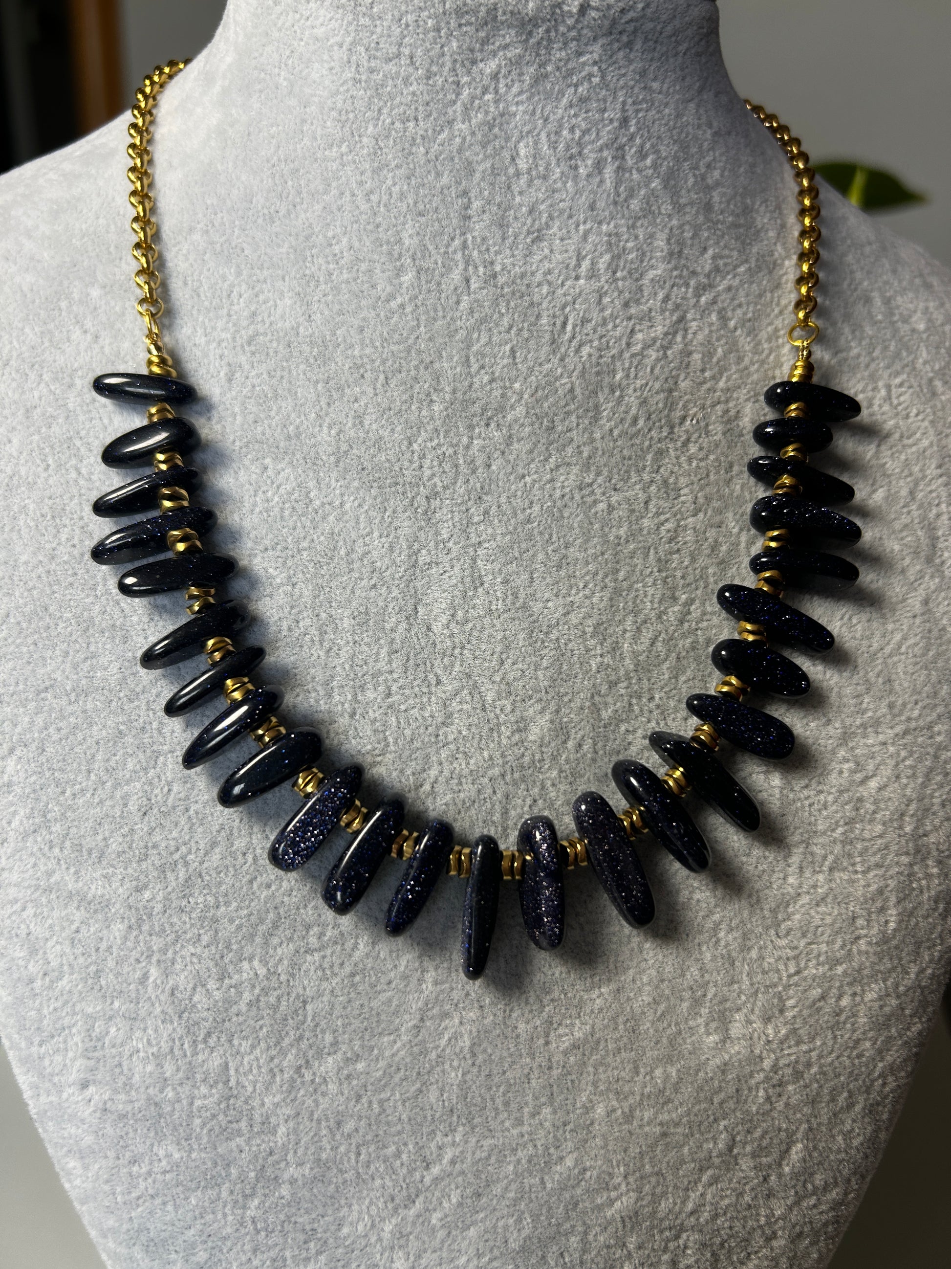 Maris Stargaze Necklace – Blue Sandstone & Gold-Plated Steel