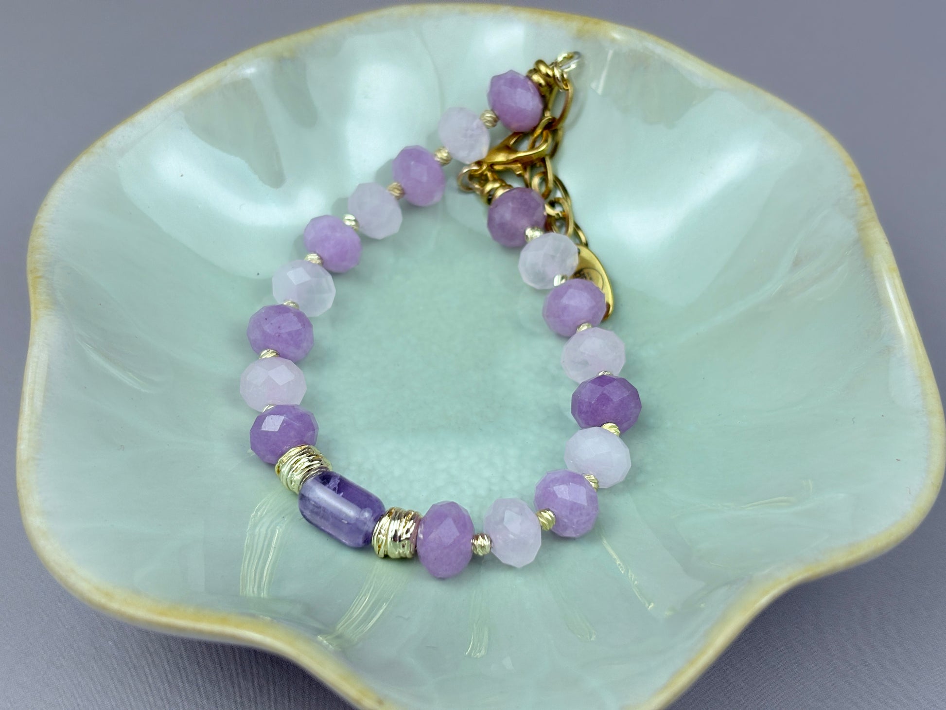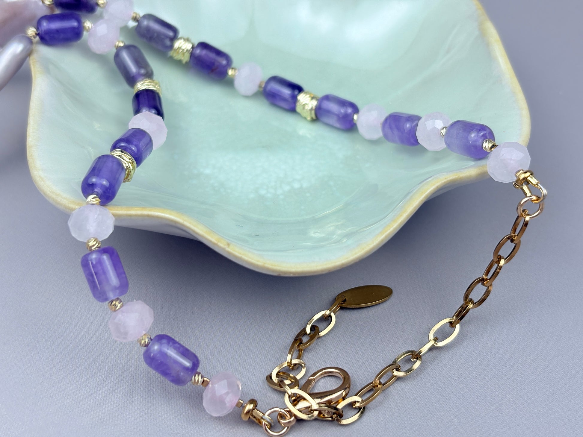 The Elara Set captures the serene beauty of amethyst, a stone long associated with clarity and calm. Paired with delicate crystals, this matching necklace and bracelet blend rich violet tones with refined sparkle, creating a look that feels both grounded and luxurious.